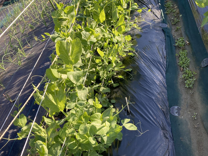 雨がよく降ります☔ね 昨夜は風も強くて🌪️それに、寒い🥶 またまた久しぶりの畑です💦 すっかりえんどう豆のツルが 大きくなってました🫛❗️ 慌てて紐を横に張りました✌️